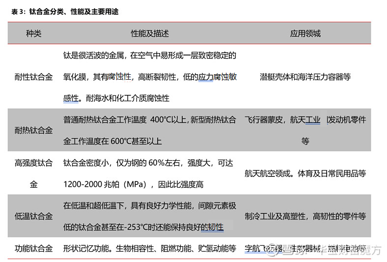 鈦合金指的是多種用鈦與其他金屬制成的合金金屬。鈦具有密度小比強度高,導熱系數低、耐高溫低溫性能好、耐腐蝕能力強等特點,其中最為突出的兩大優點是比強度高和耐腐蝕性強,這決定了鈦在海陸空和外層空間都有廣泛的用途,具體包括航空航天、常規兵器、艇及海洋工程、核電及火力發電、化工與石化、冶金、建筑、交通、體育與生活用品等。此外鈦無毒、質輕、強度高且具有優良的生物相容性,是非常理想的醫用金屬材料,可用作植入人體的植入物等。根據性能及用途,鈦合金又分為耐蝕鈦合金、耐熱鈦合金、高強度鈦合金、低溫鈦合金、粉末鈦合金、功能鈦合金等。