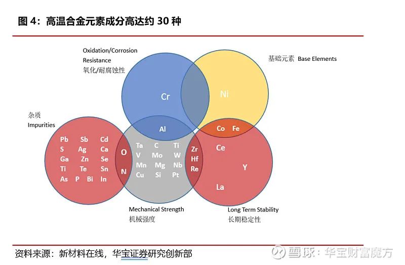 綜合來看高溫合金的技術瓶頸主要體現在成分、設備及熱處理三個方面: